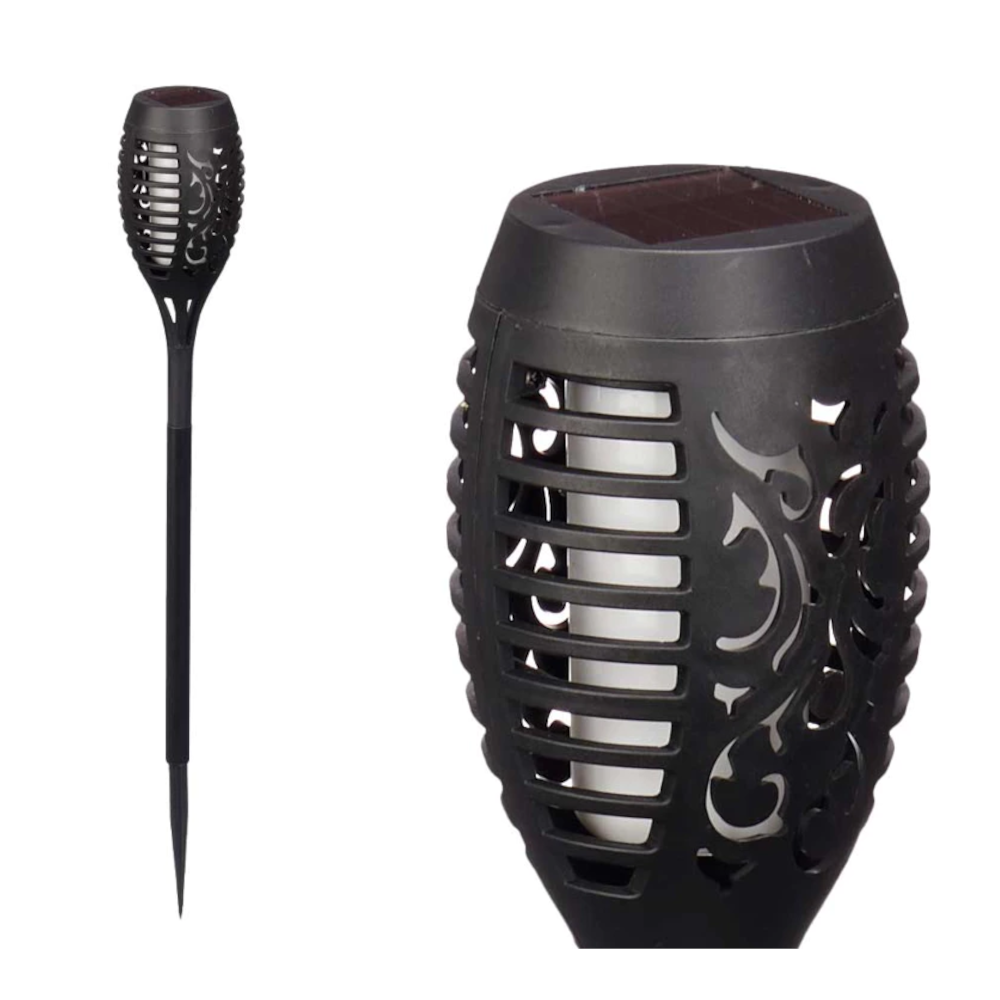 Glød Solcellelampe skaber magisk stemning med varm, levende flammeeffekt. Den oplades i solen, tænder automatisk ved mørke og kræver ingen ledninger. Robust, vejrbestandig og perfekt til stier, terrasser og havehygge.